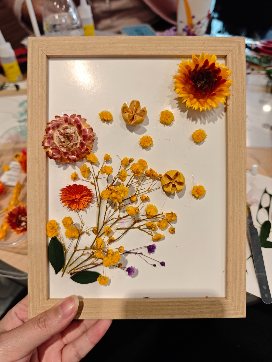 女職工們以永生花為筆,將春日浪漫定格于方寸之間。挑選干花素材、構思畫面層次、粘貼封存時光,原本素凈的木制相框逐漸被賦予獨特生命力。活動現場笑語盈盈,一件件作品成為專屬節日的藝術紀念。